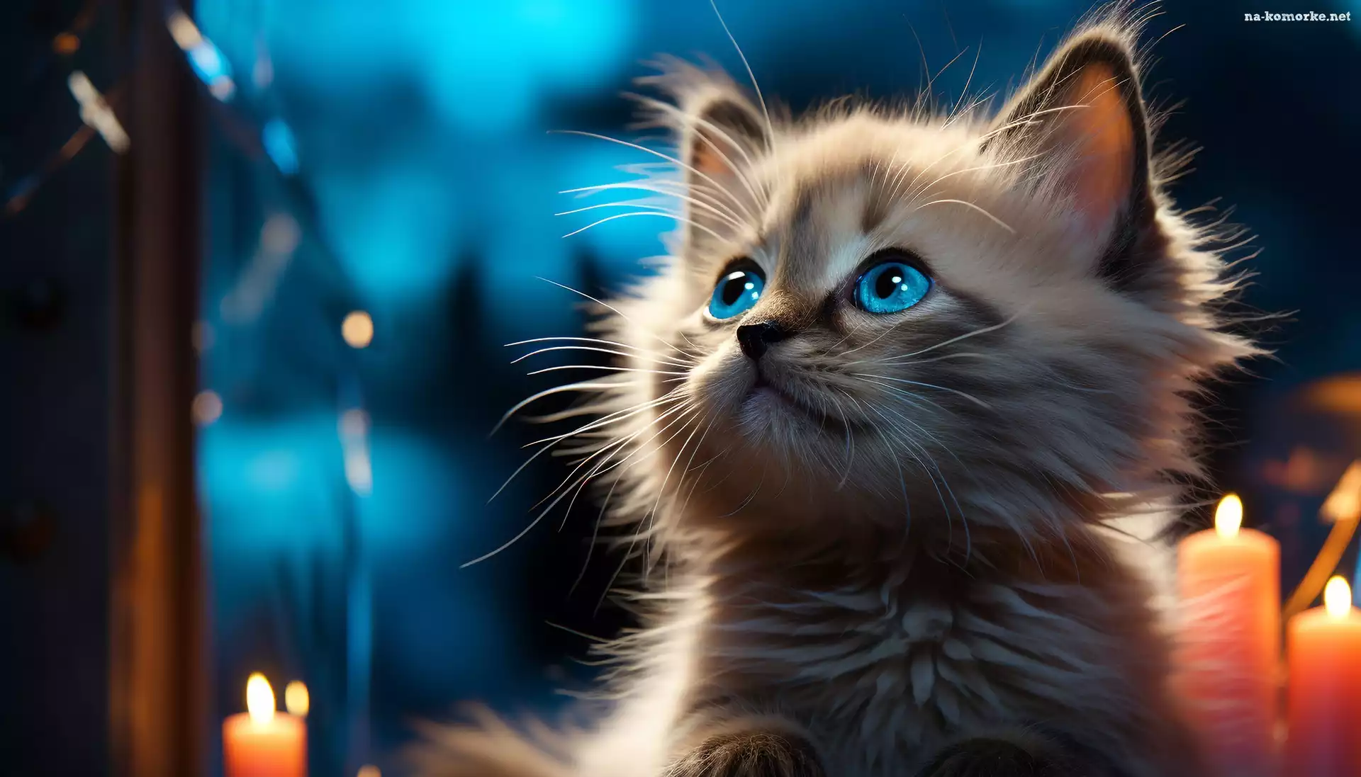Mały, Niebieskie, Oczy, Kot, Grafika na Komórkę