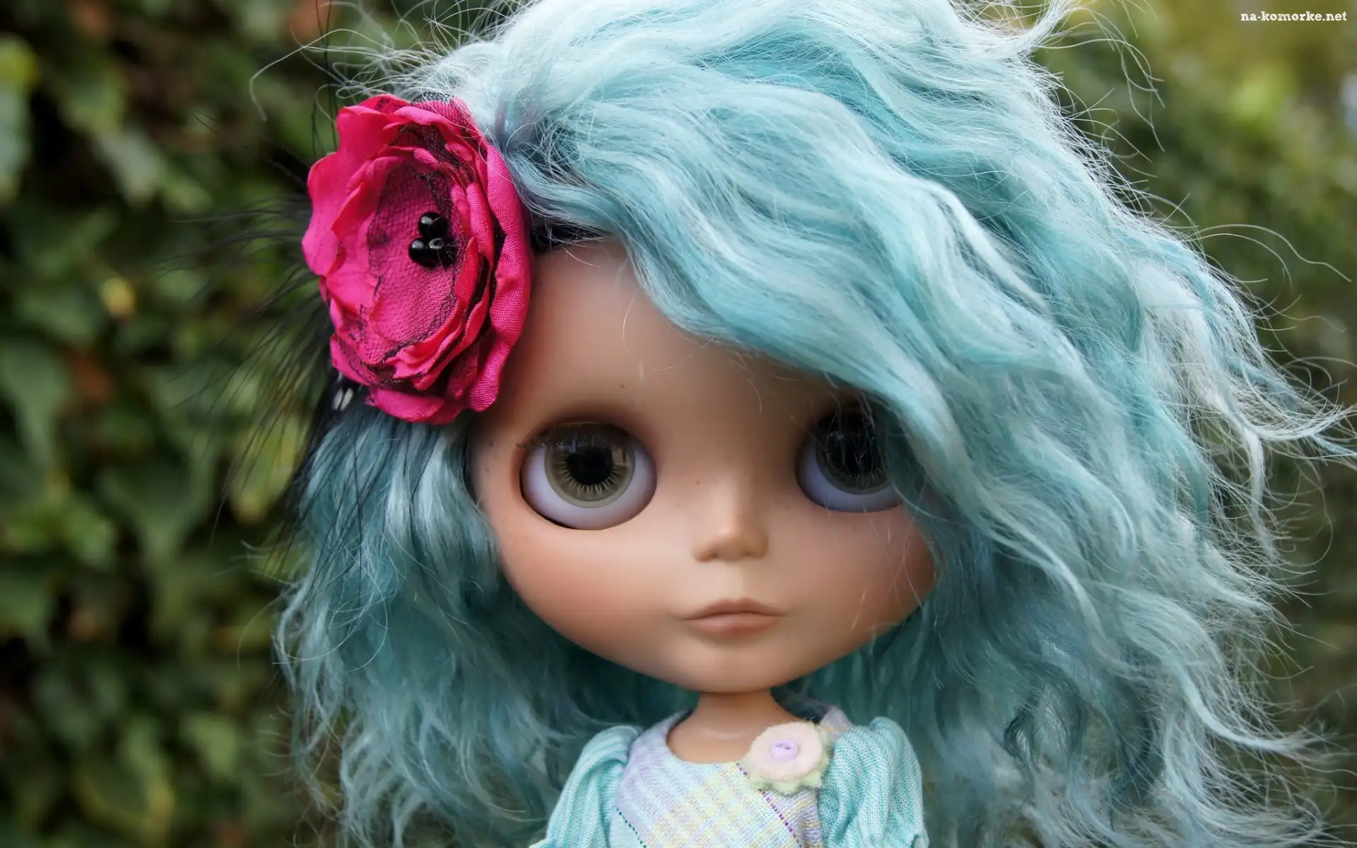 Niebieskie, Lalka, Zabawka, Kwiat, Oczy, Włosy na Komórkę