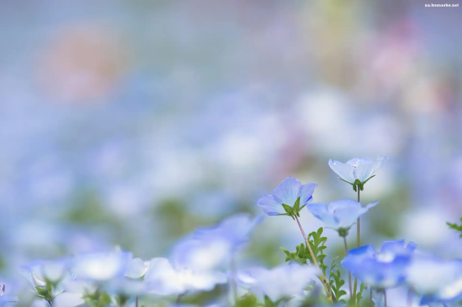 Niebieskie, Kwiatki, Rozmyte tło na Komórkę