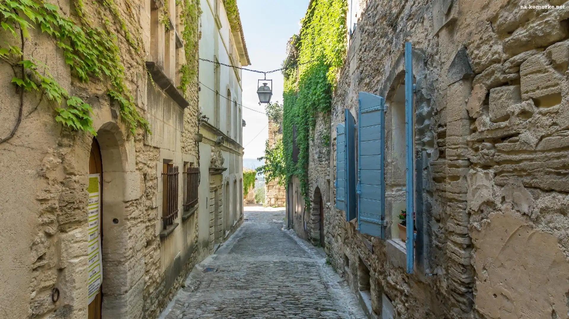 Niebieskie okiennice, Francja, Prowansja, Uliczka, Domy na Komórkę