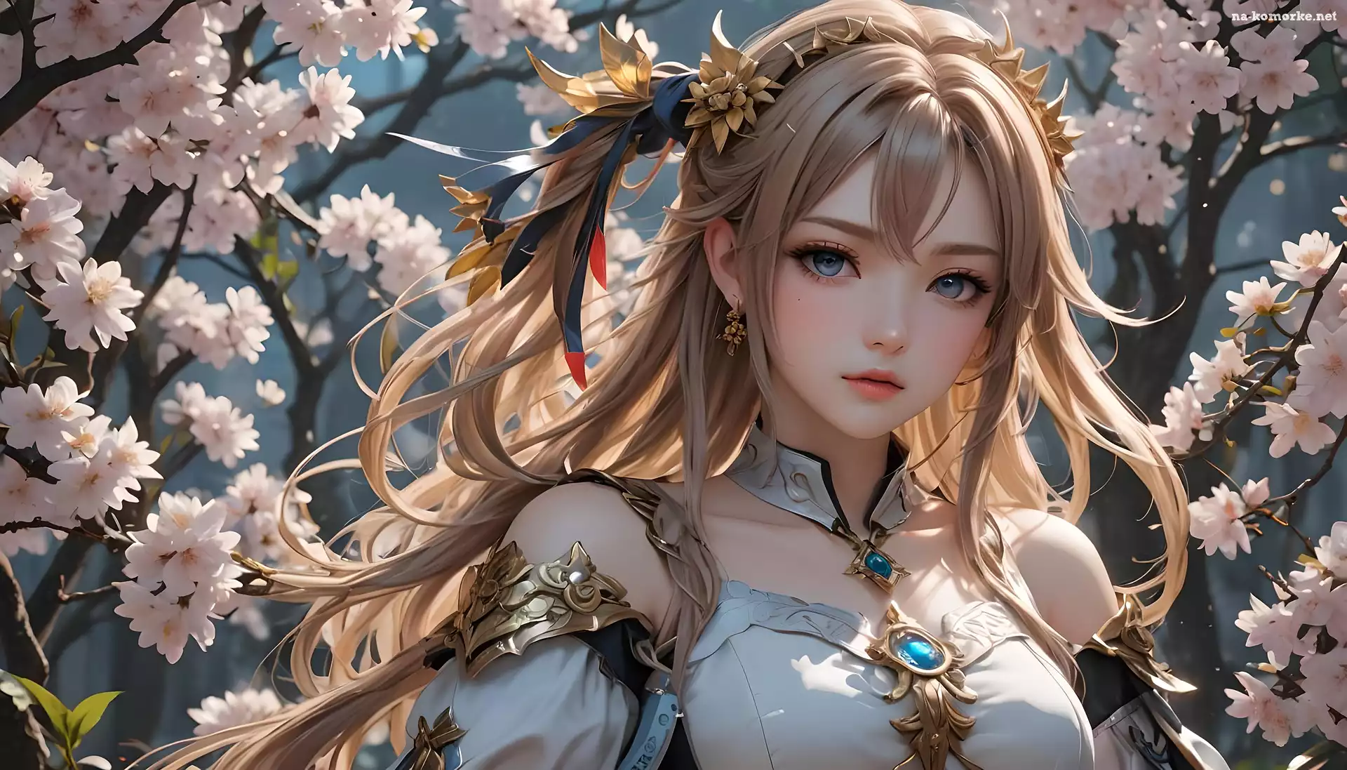 Oczy, Gałęzie, Włosy, Dziewczyna, Ukwiecone, Anime, Długie, Niebieskie na Komórkę