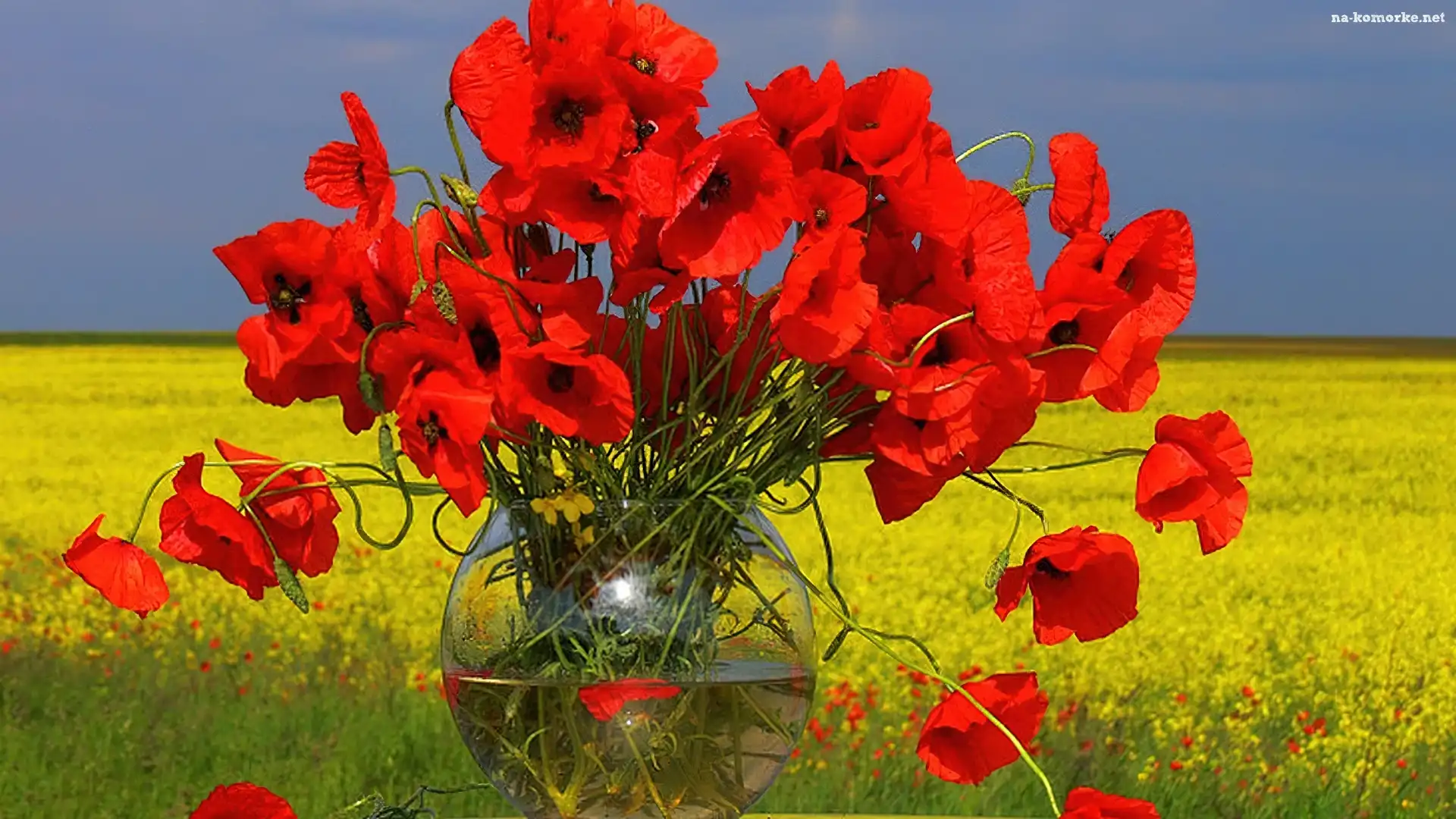 Niebo, Maki, Łąka, Wazon na Komórkę