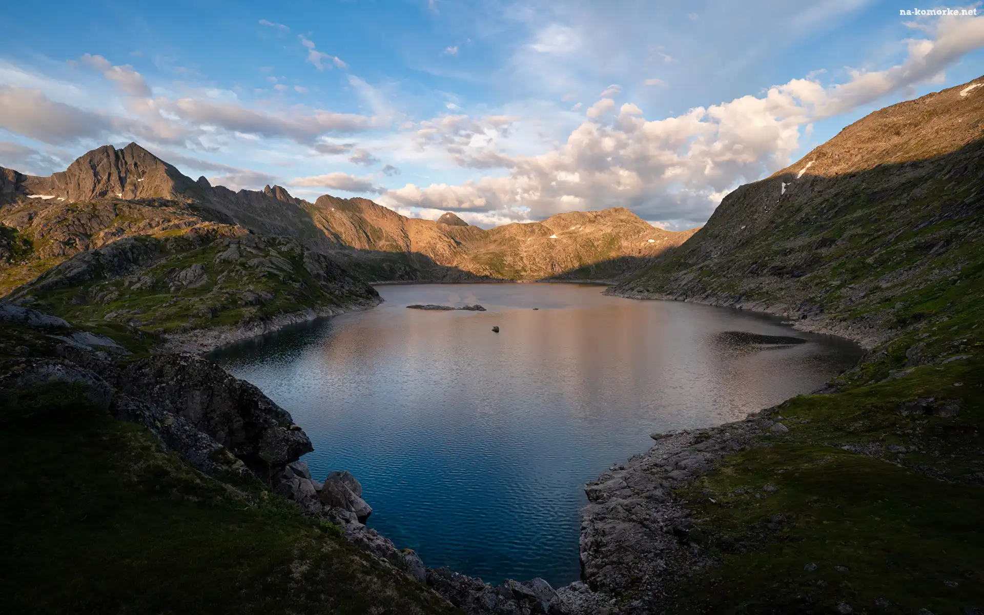 Góry, Niebo, Białe, Jezioro, Chmury na Komórkę