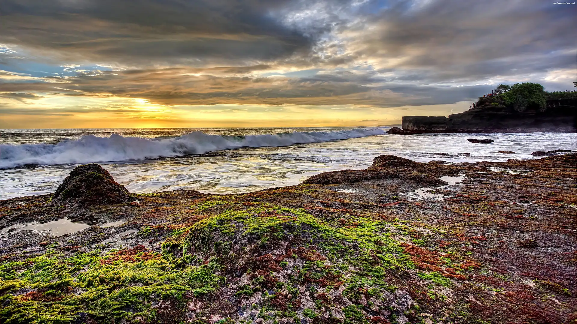 Niebo, Morze, Zachód słońca, Chmury, Fale na Komórkę
