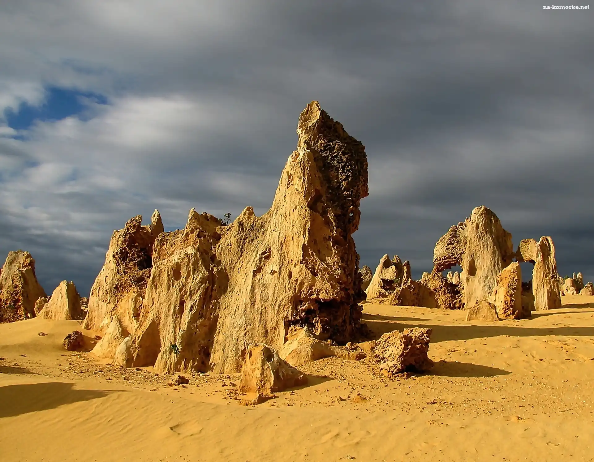 Niebo, Pustynia, Skały, Cienie, Zachmurzone na Komórkę