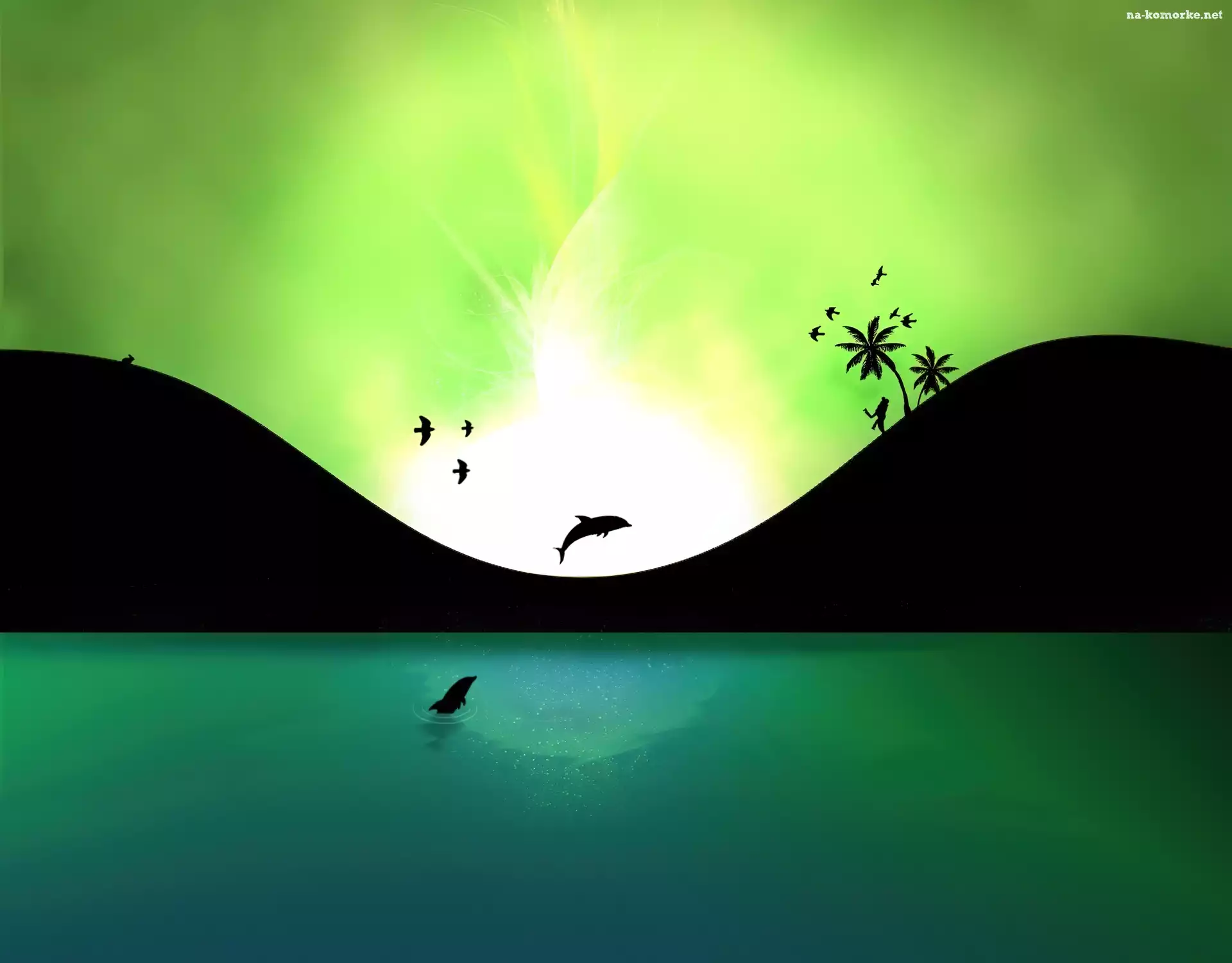 Turkusowa, Delfiny, Zielone, Woda, Niebo na Komórkę