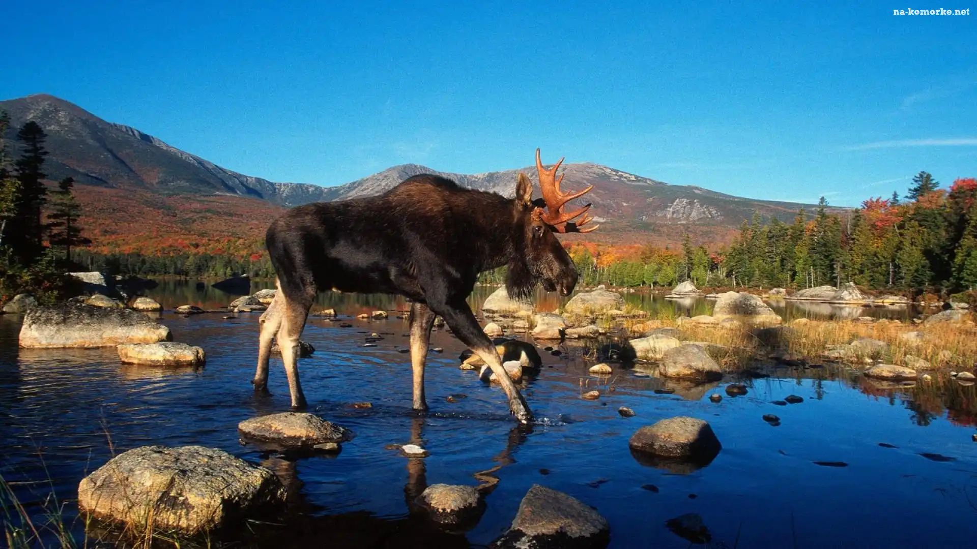 Niebo, Łoś, Rzeka, Góry, Las na Komórkę