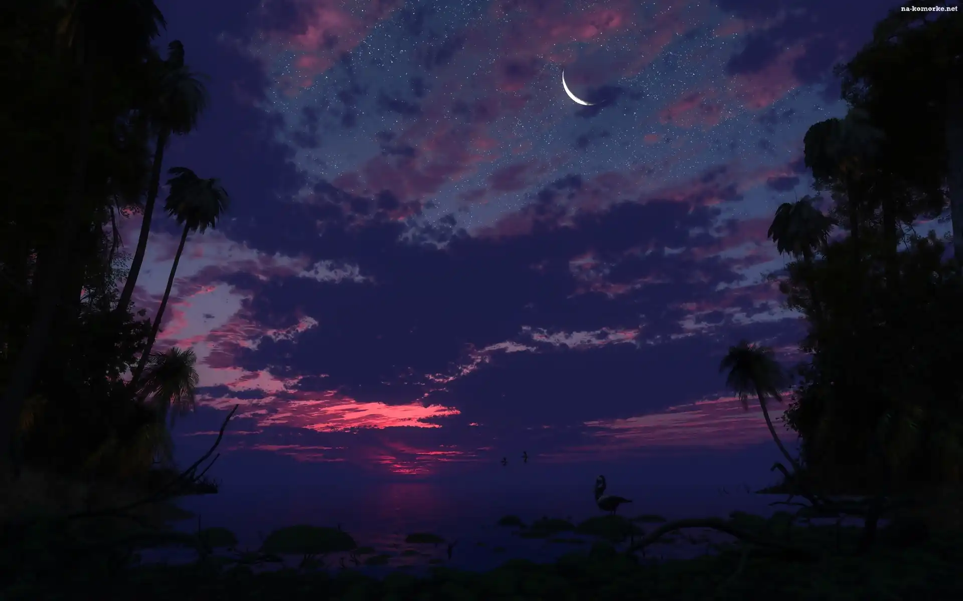 Niebo, Noc, Gwiazdy, Księżyc na Komórkę