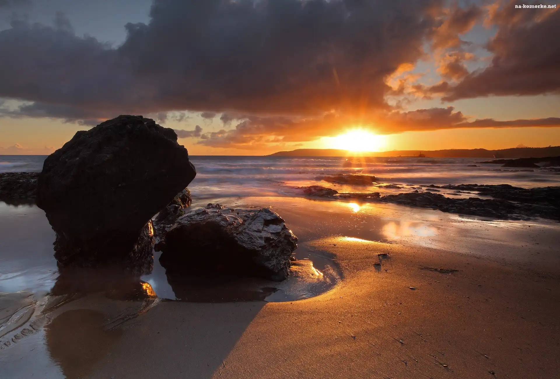 Niebo, Zachód, Słońca, Morze, Piasek na Komórkę