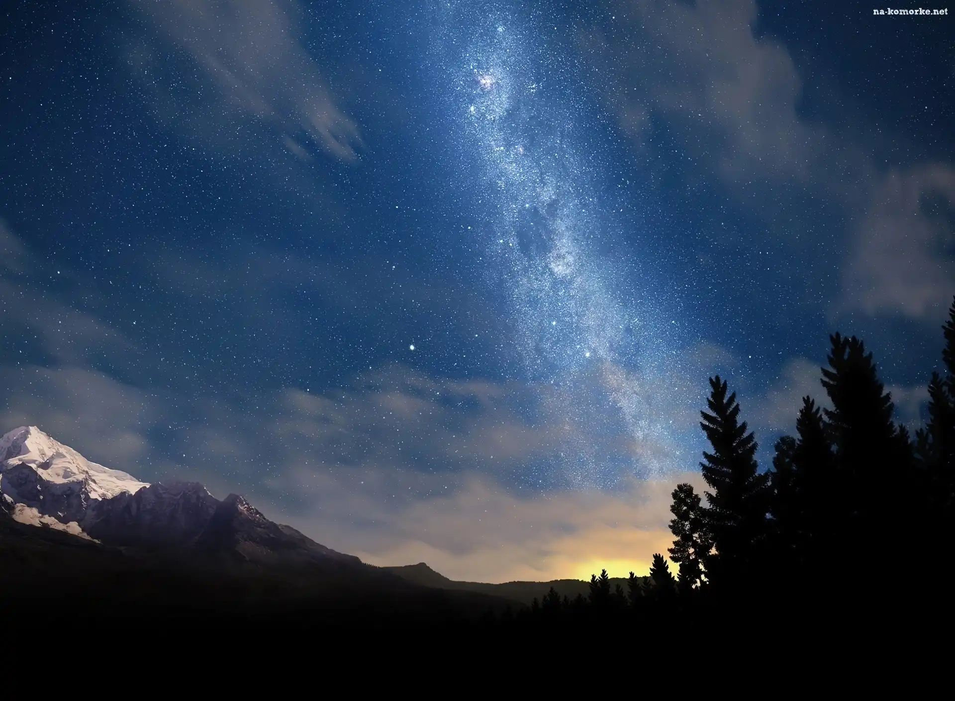 Niebo, Góry, Drzewa, Noc, Gwiaździste na Komórkę