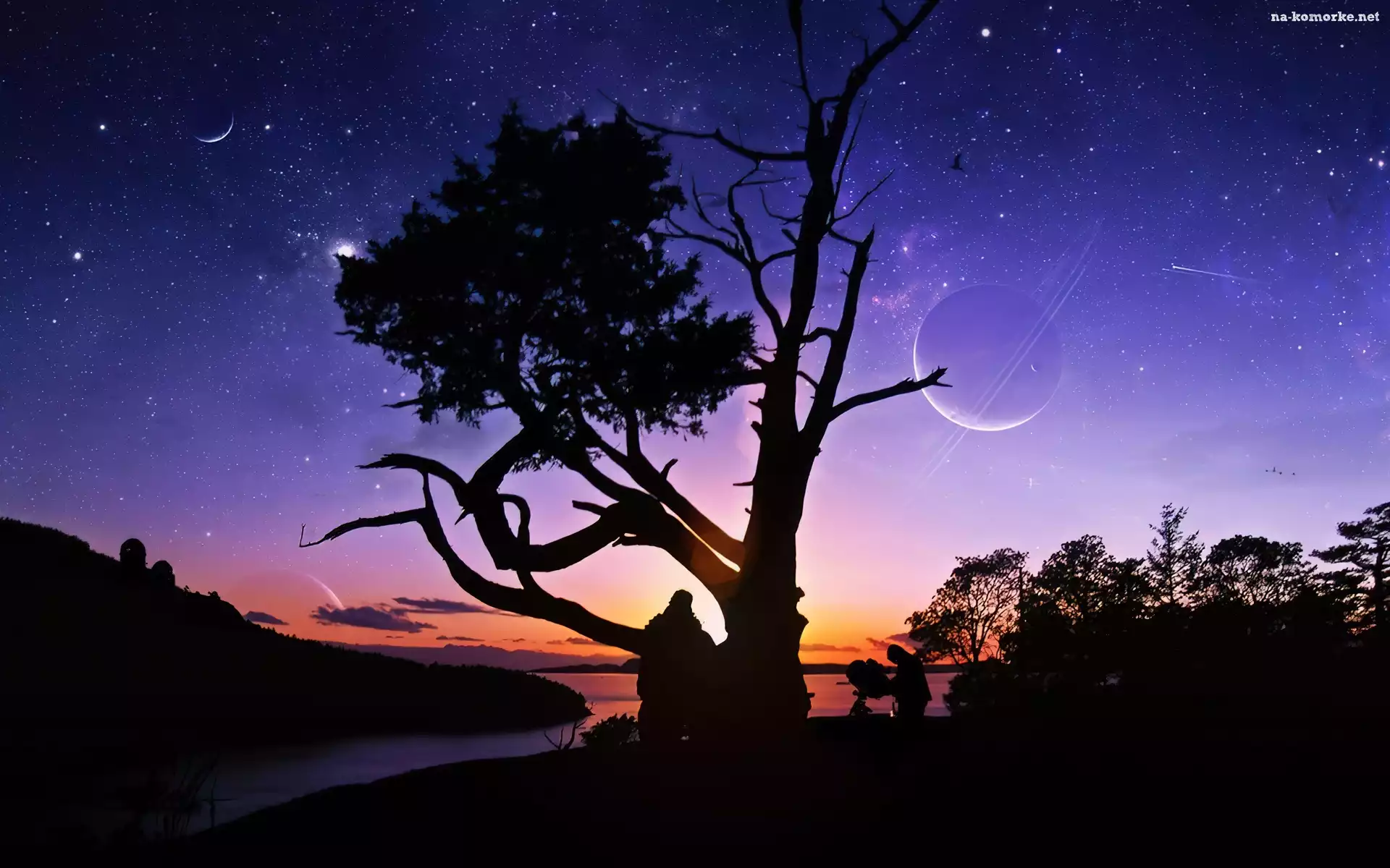 Niebo, Noc, Planety, Człowiek na Komórkę