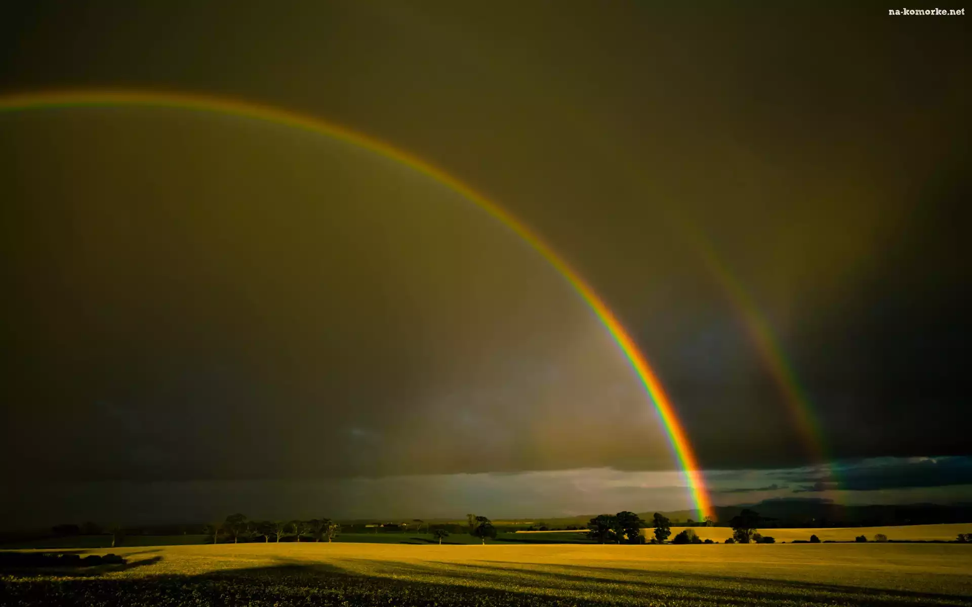 Niebo, Tęcze, Nad, Polami, Czarne na Komórkę