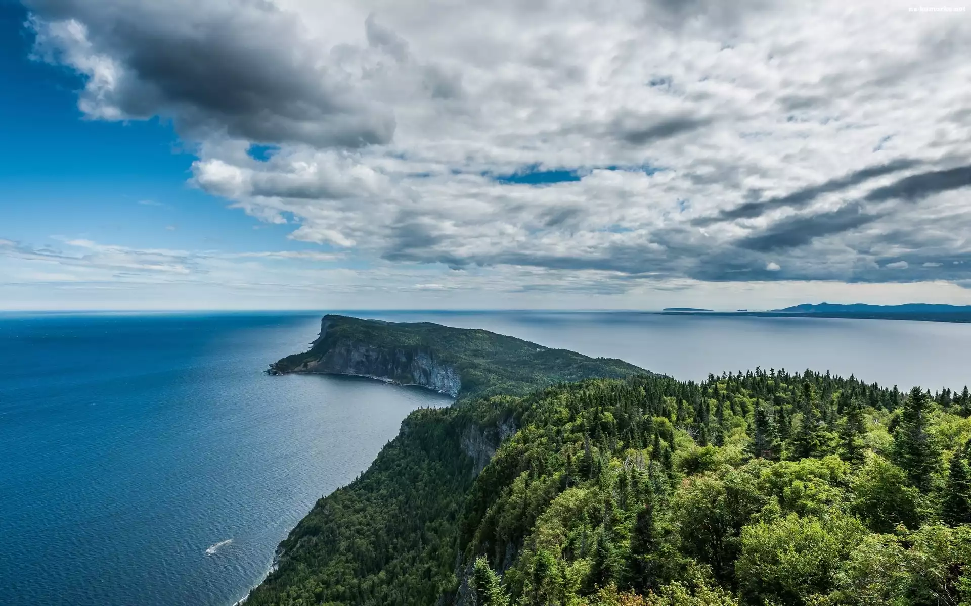 Niebo, Zalesione, Wybrzeże, Półwysep, Pochmurne na Komórkę