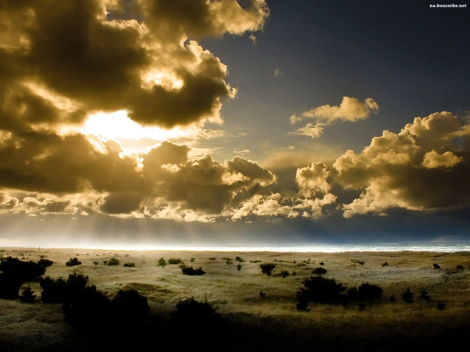 Niebo, Chmury, Promienie Słońca na Komórkę
