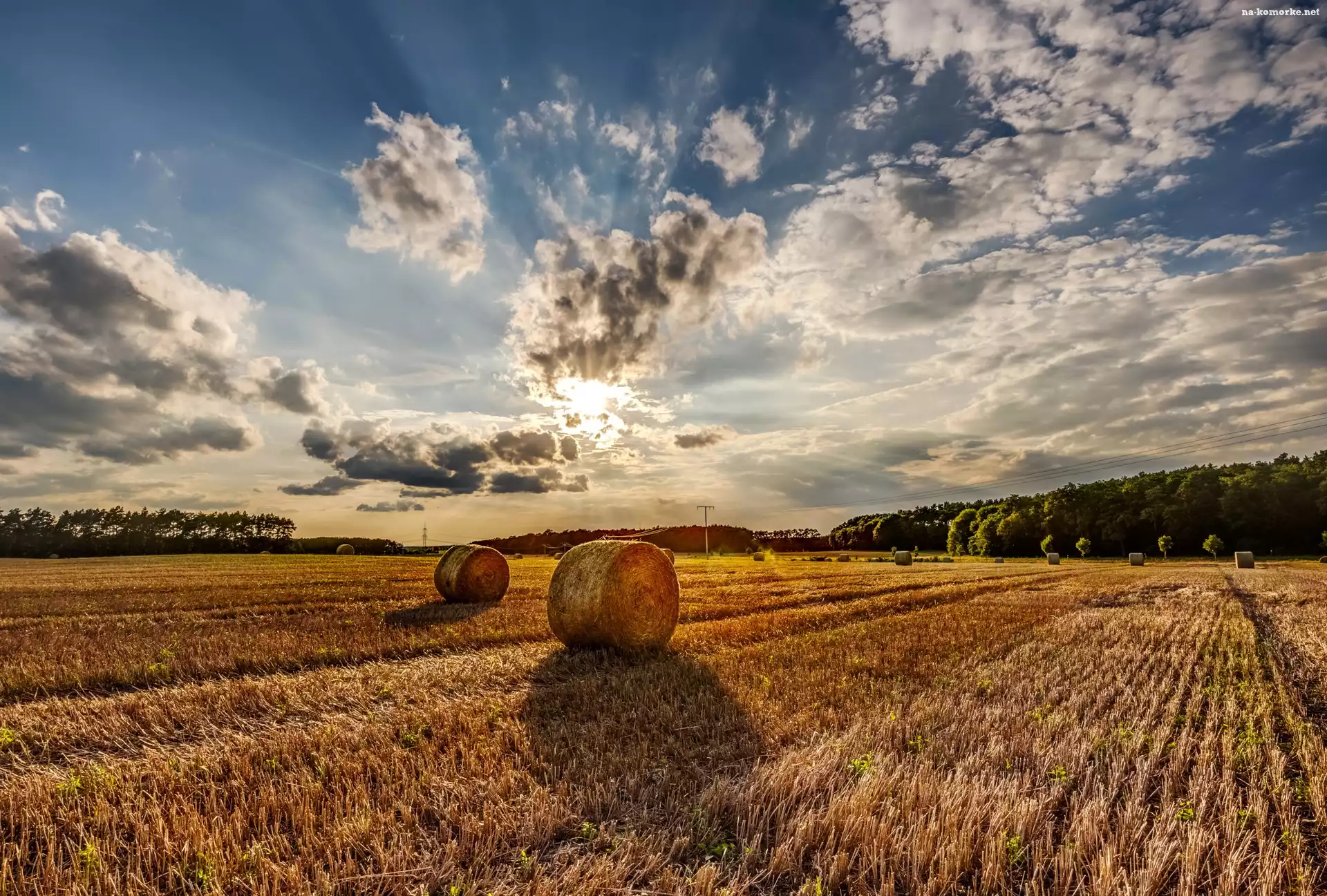 Niebo, Pole, Baloty, Słomy, Zachmurzone na Komórkę