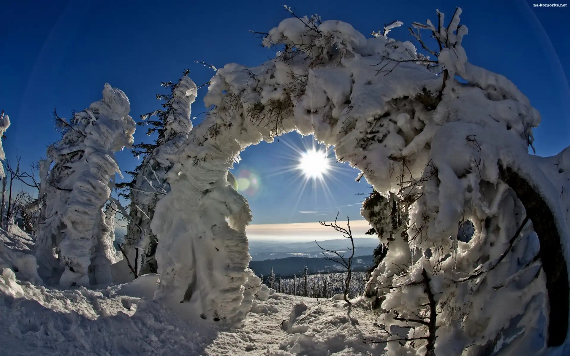 Niebo, Drzewa, Słońce, Ośnieżone na Komórkę
