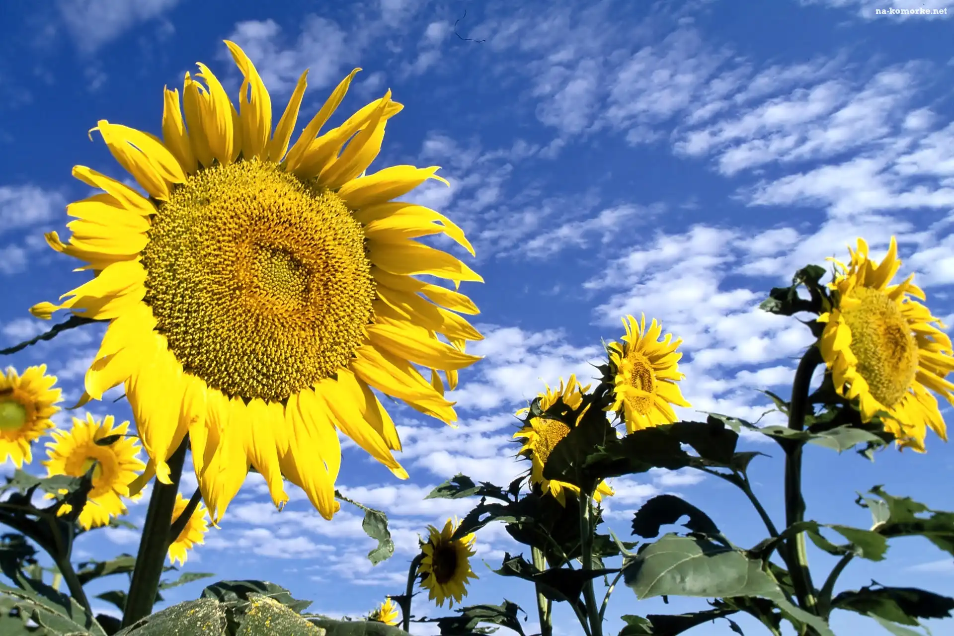 Słoneczniki, Niebo, Obłoki na Komórkę