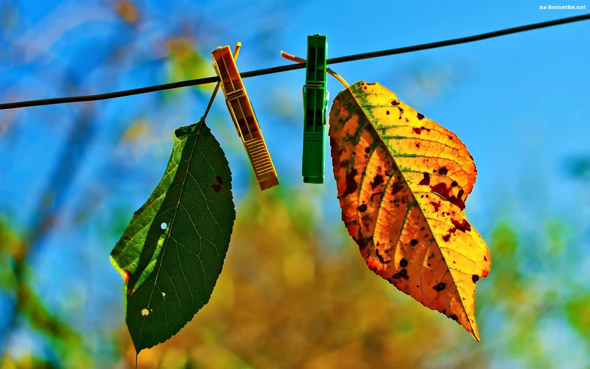 Niebo, Dwa, Listki, Spinacze, Sznur na Komórkę