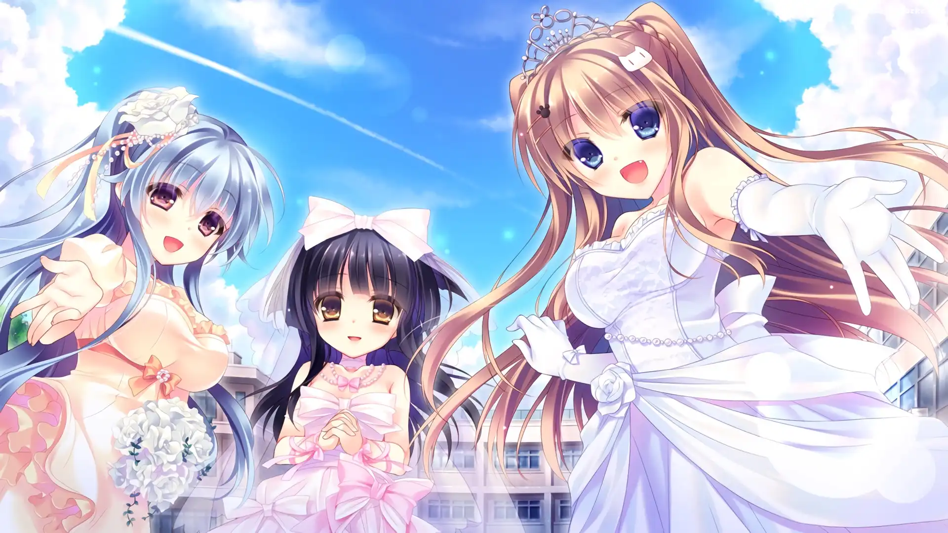 Niebo, Trzy, Dziewczyny, Suknie, Balowe na Komórkę