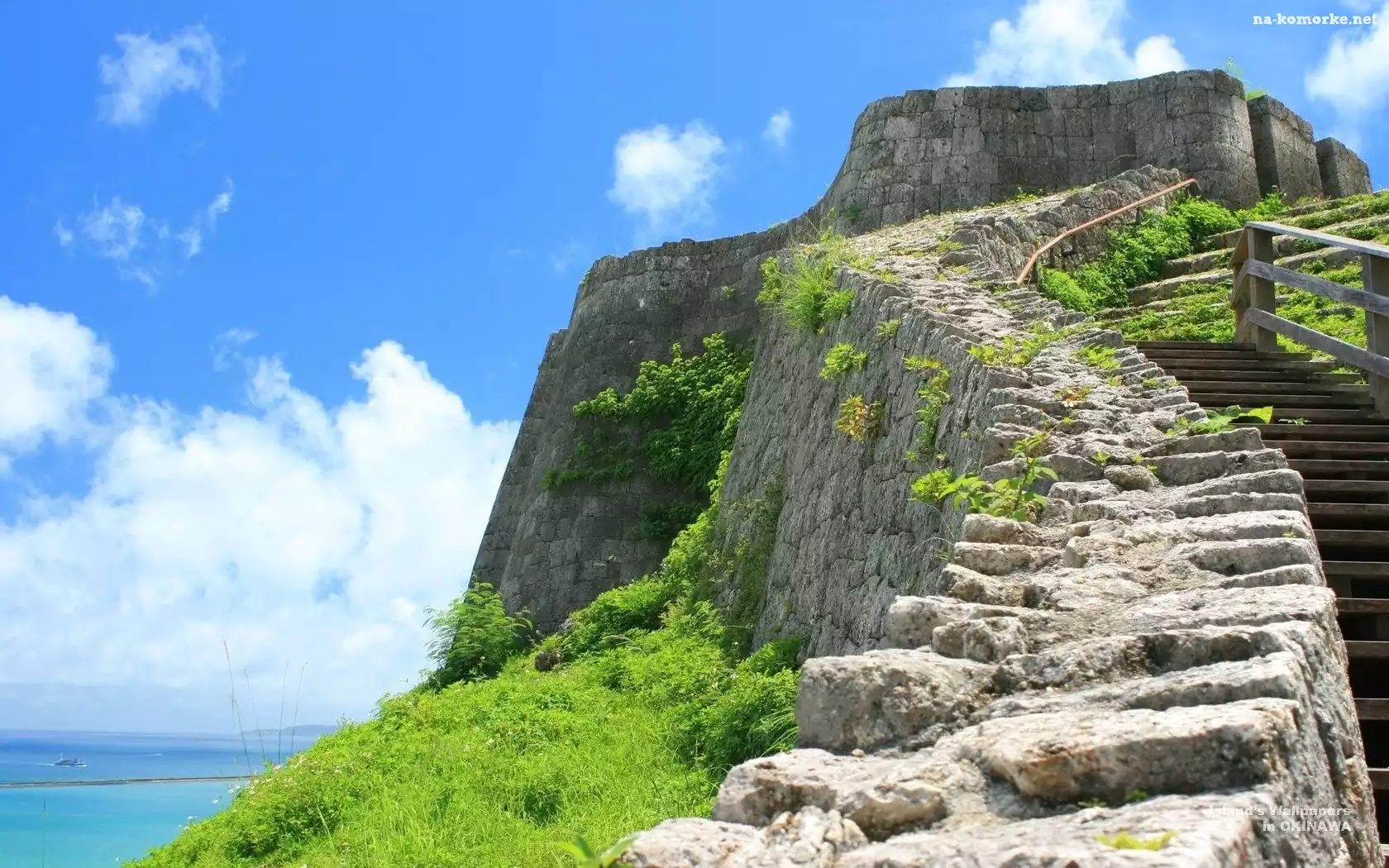 Niebo, Morze, Schody, Trawa, Chmury na Komórkę