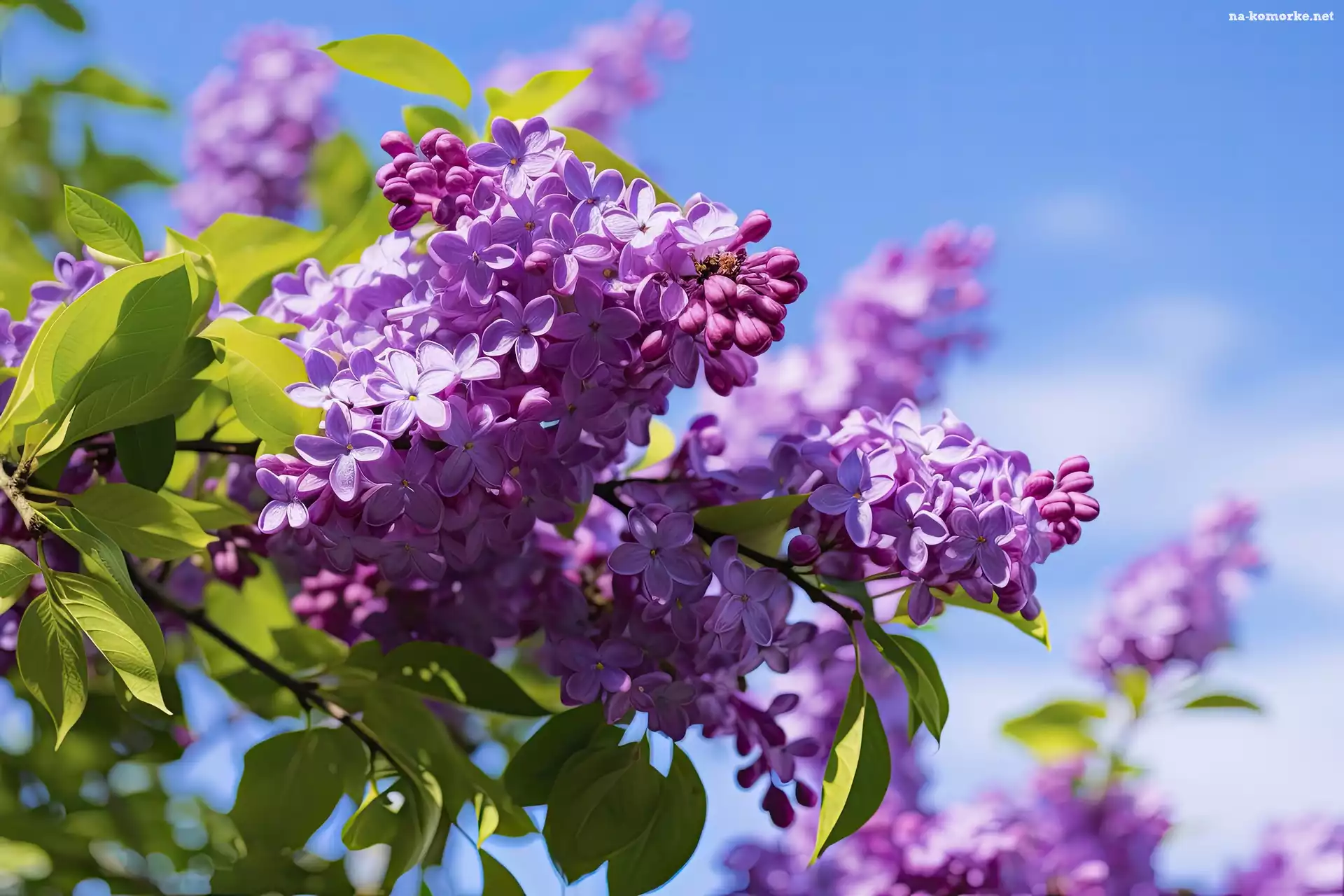 Kwiaty, Niebo, Wiosna, Bez, Grafika na Komórkę