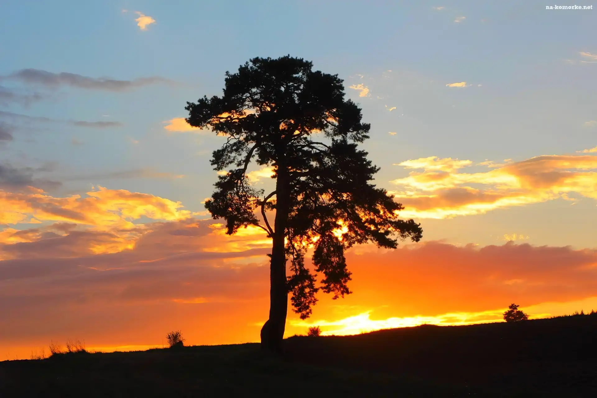 Niebo, Samotna, Sosna, Zachód, Słońca na Komórkę