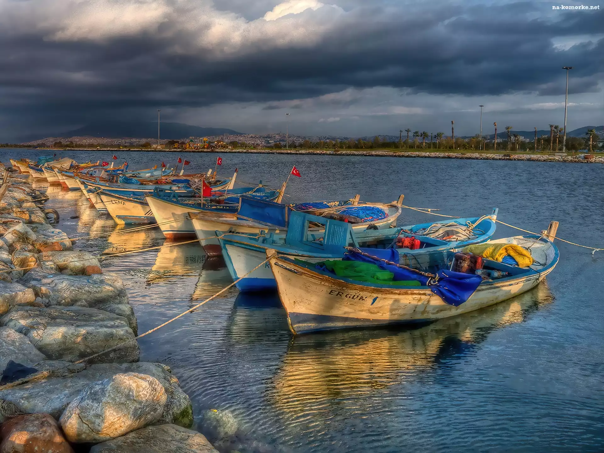 Łodzie, Zatoka, Burzowe, Niebo, Zacumowane na Komórkę