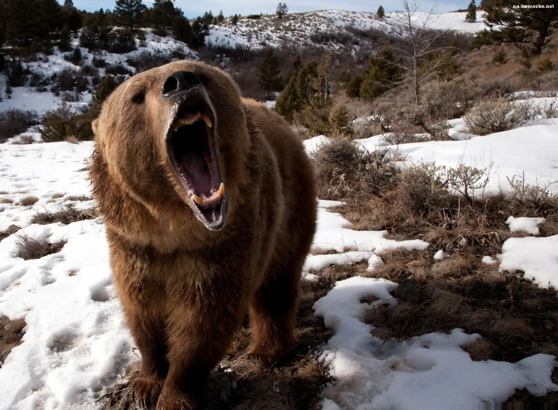 Brązowy, Niedzwiedz, Śnieg na Komórkę