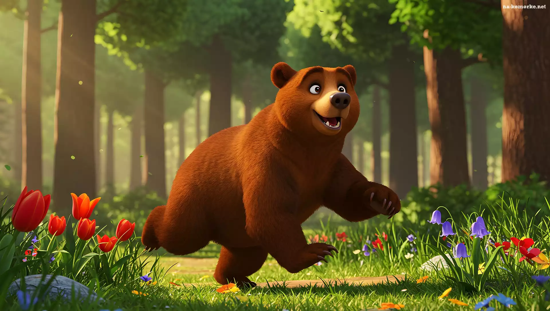 Las, Kwiaty, Wesoły, Niedźwiedź na Komórkę
