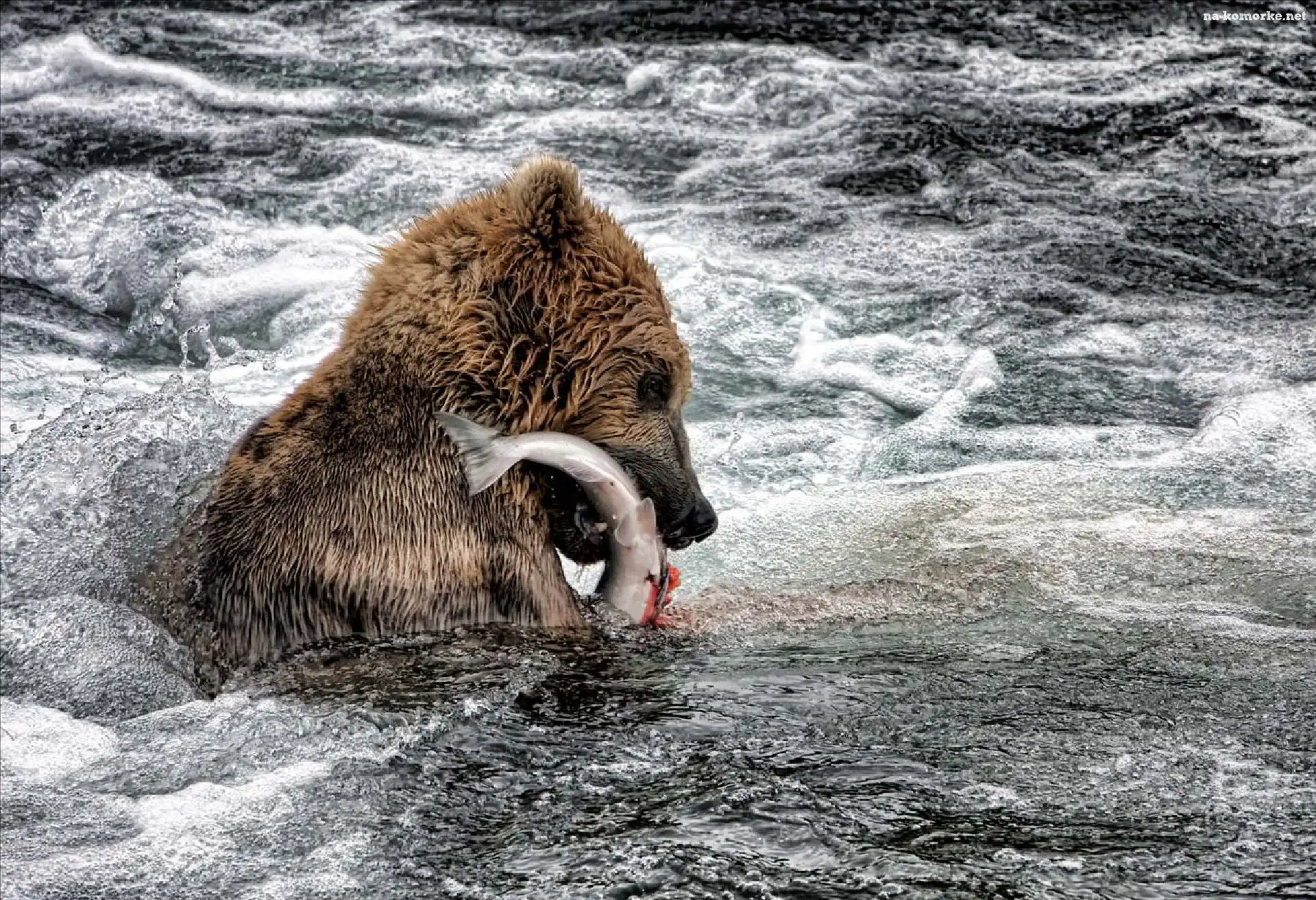 Rzeka, Niedźwiedź, Ryba na Komórkę