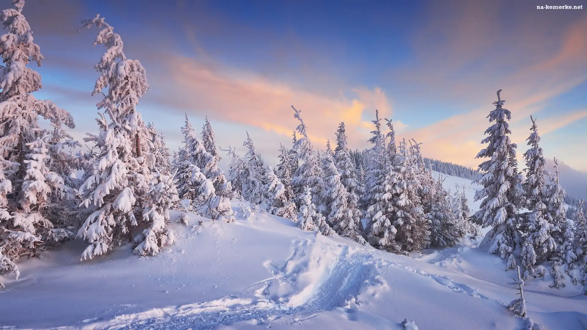 Śnieg, Ośnieżone, Zima, Chmury, Świerki, Ścieżka na Komórkę