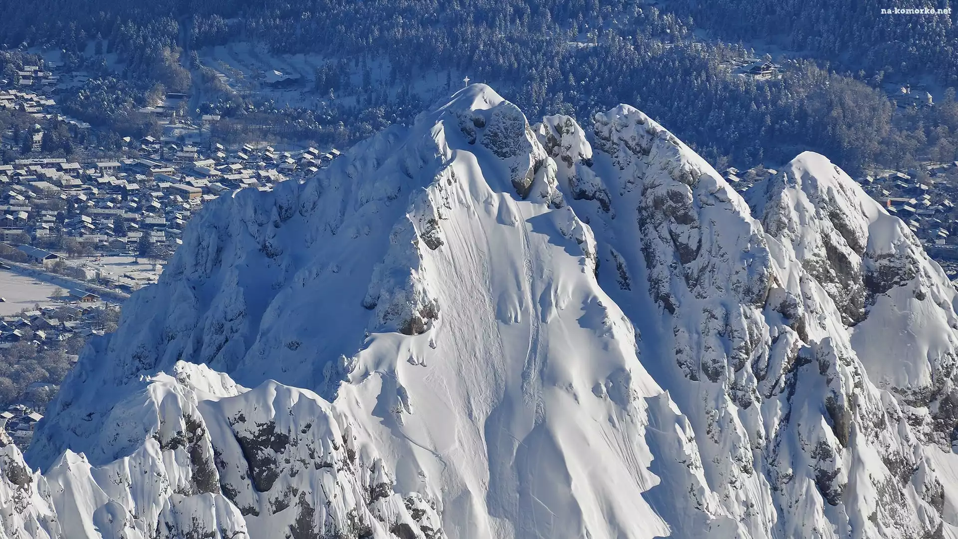 Śnieg, Szczyty, Góry, Domy, Zima, Drzewa na Komórkę