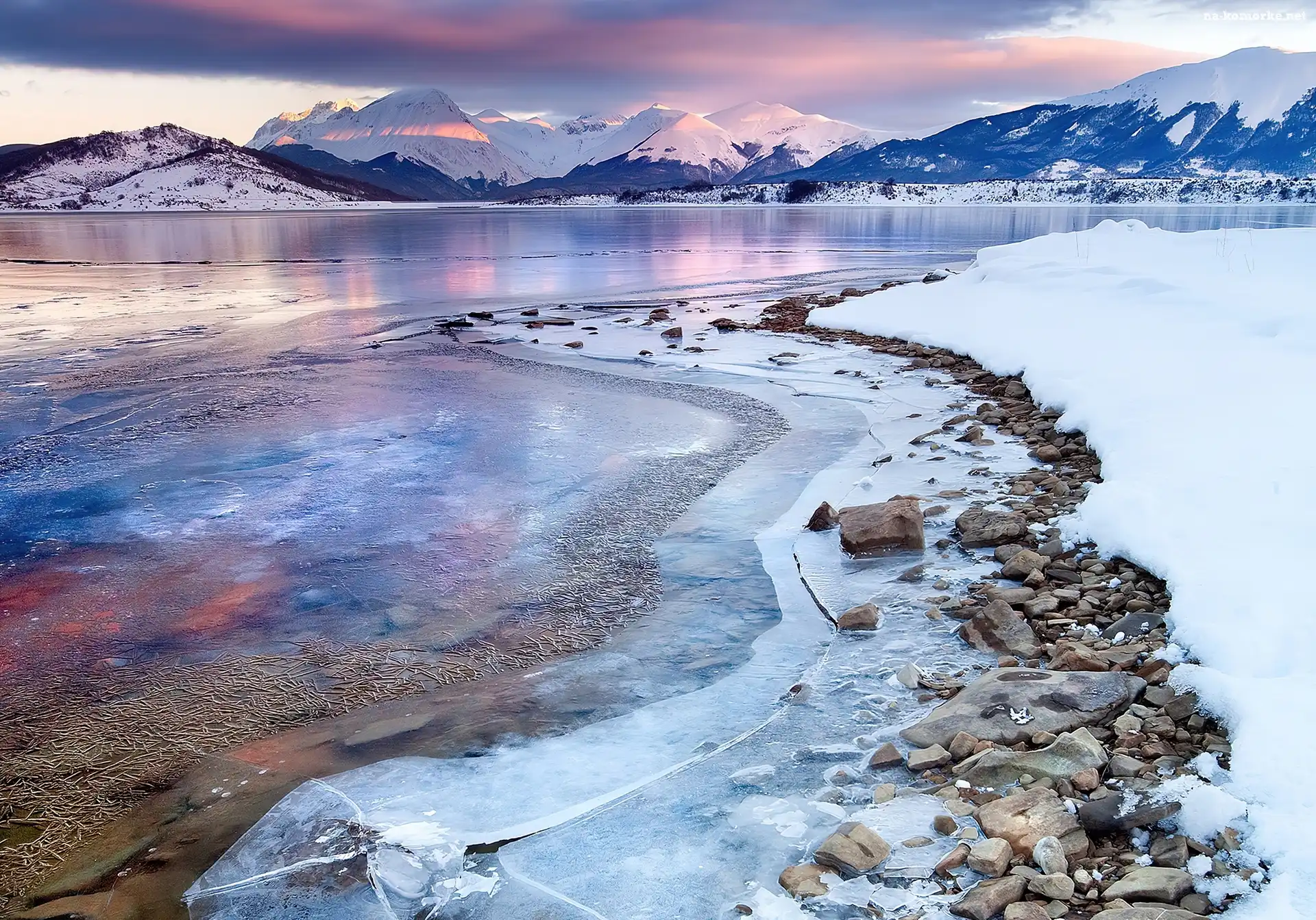 Śnieg, Zima, Góry, Kamienie, Jezioro, Lód na Komórkę