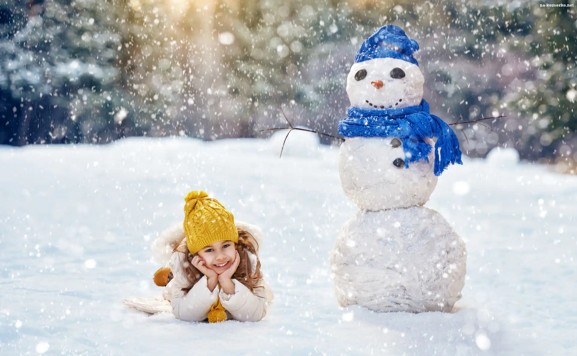 Bałwan, Śnieg, Dziewczynka na Komórkę