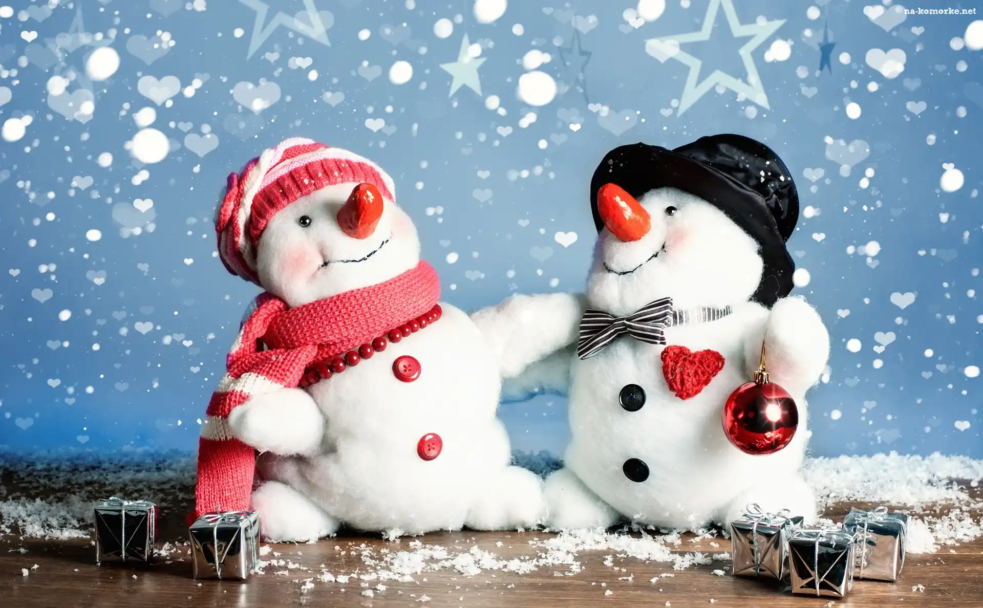 Dekoracja, Śnieg, Bombka, Świąteczna, Dwa, Bałwanki, Prezenty na Komórkę