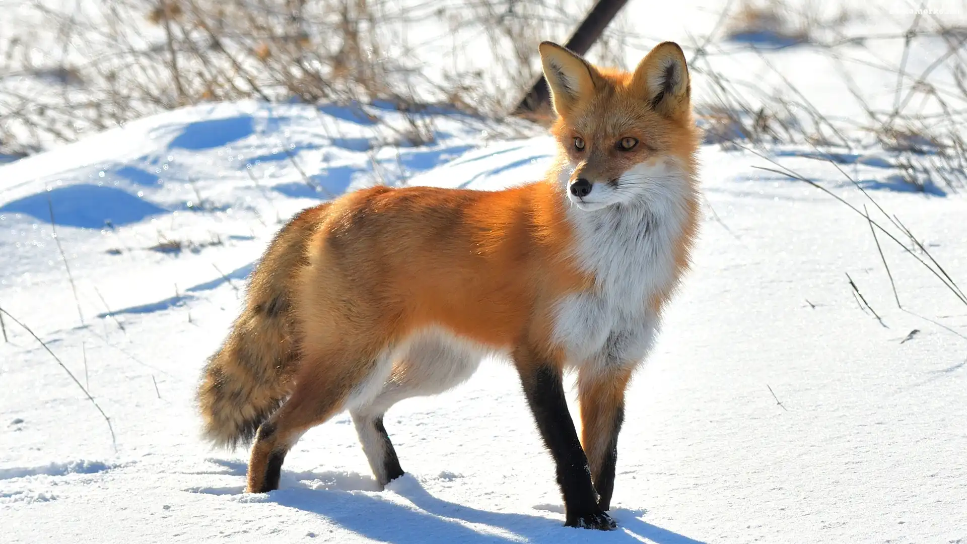 Lis, Śnieg, Trawa na Komórkę