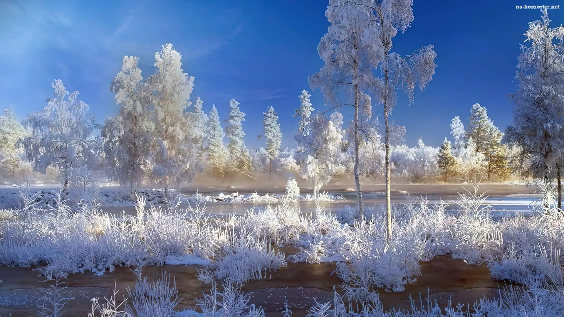 Rzeka, Śnieg, Drzewa na Komórkę