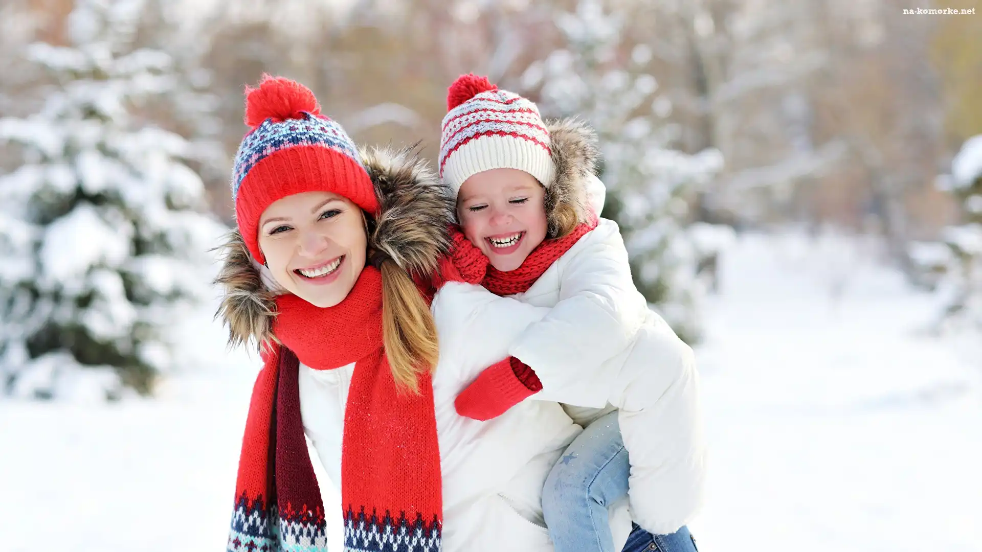 Kobieta, Śnieg, Dziewczynka, Spacer, Dziecko, Uśmiech, Radość, Zima na Komórkę