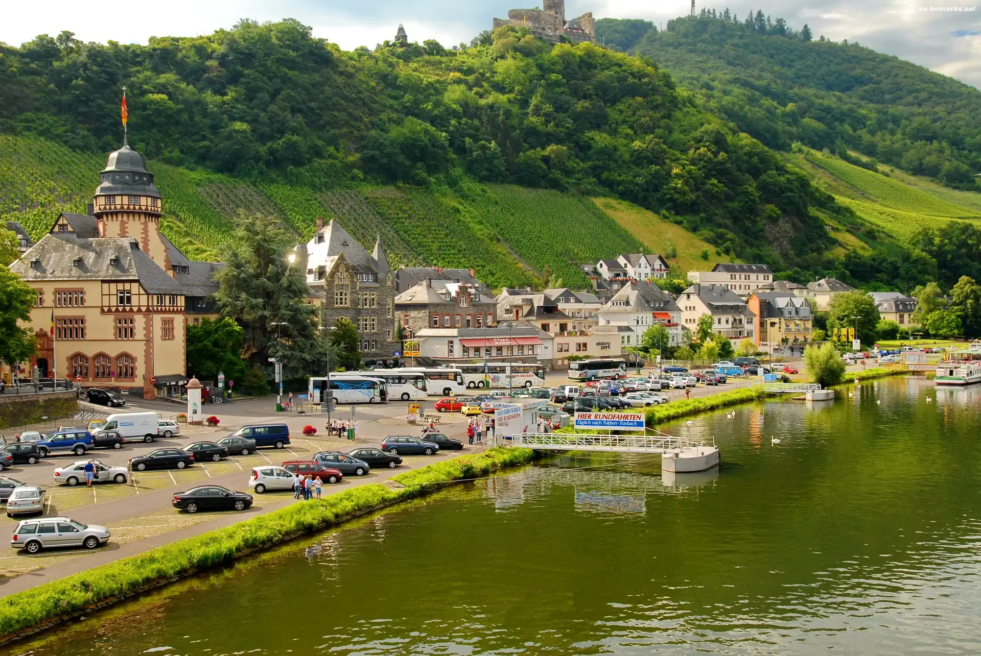Niemcy, Panorama, Miasta, Nad, Rzeką na Komórkę