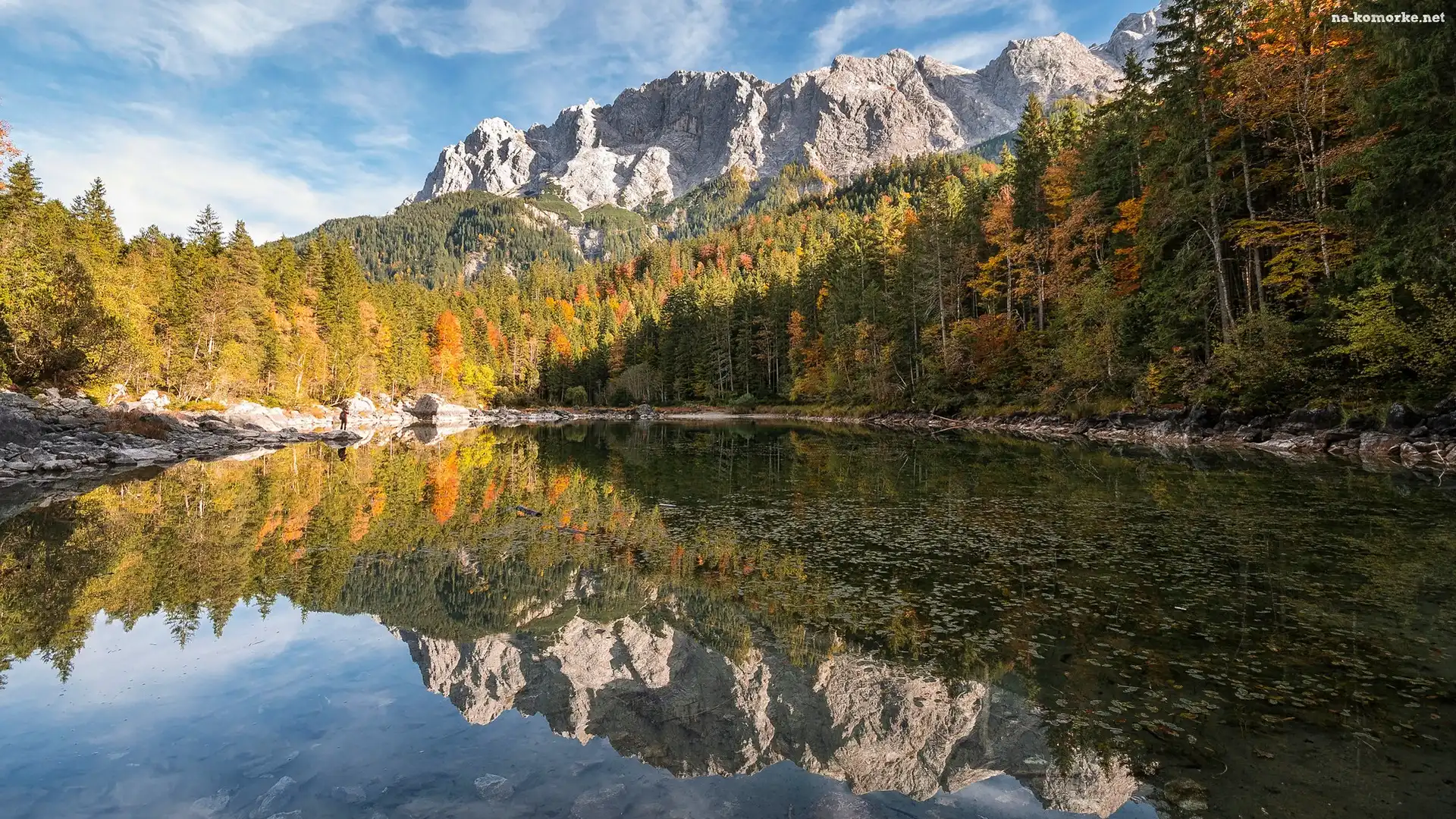 Bawaria, Góry, Odbicie, Niemcy, Drzewa, Jezioro Eibsee na Komórkę