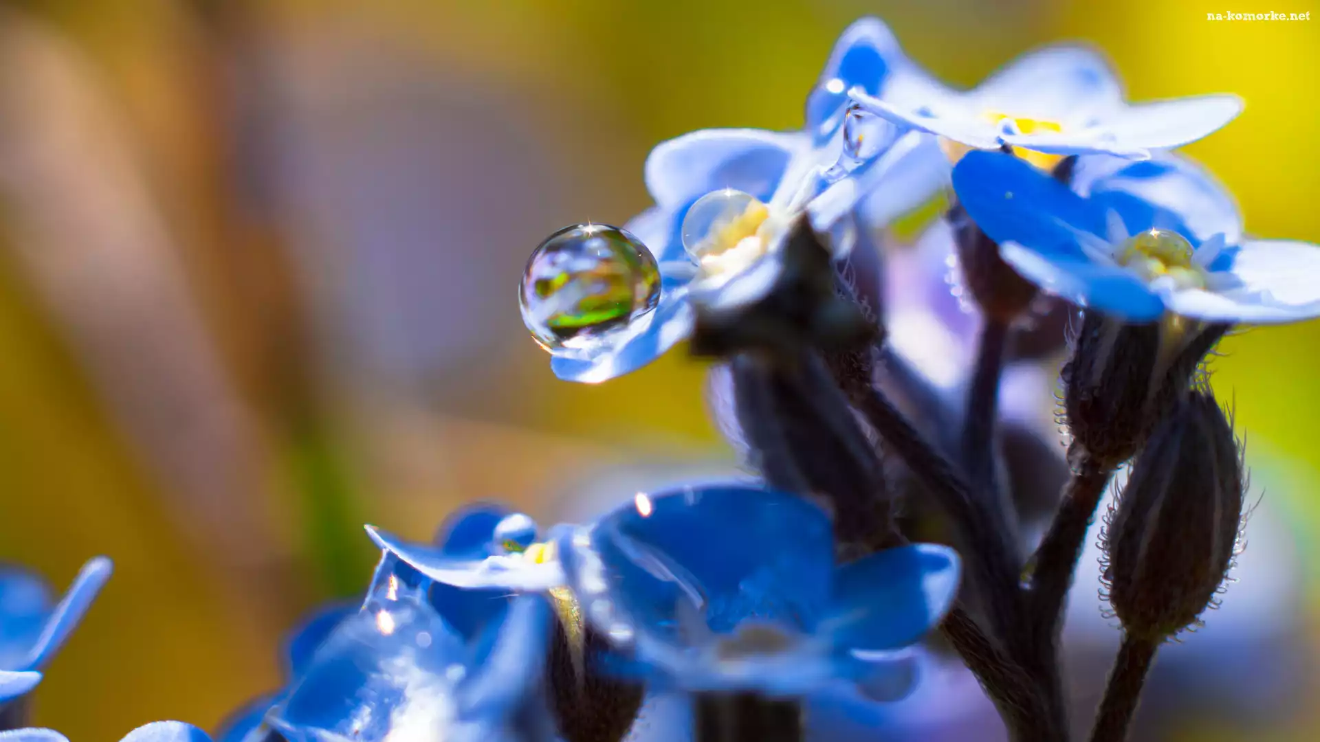 Krople, Makro, Kwiaty, Niezapominajki na Komórkę