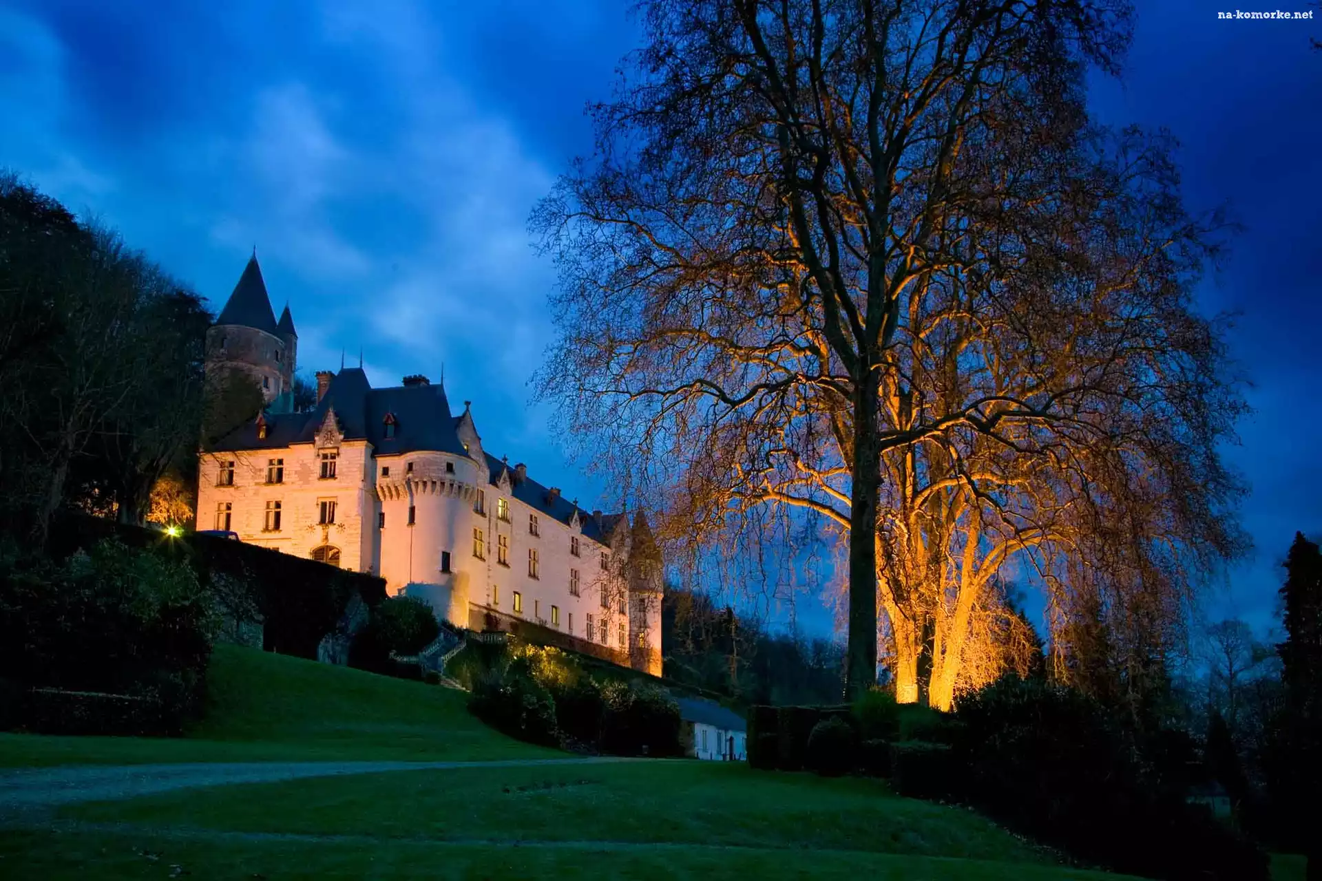 Noc, Oświetlony, Zamek, Amboise, Francja na Komórkę