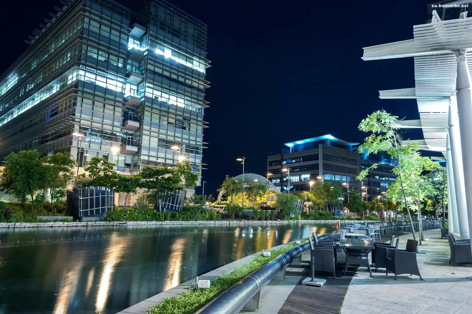 Bulwar, Noc, Wieżowce, Chiny, Rzeka, Hong Kong na Komórkę