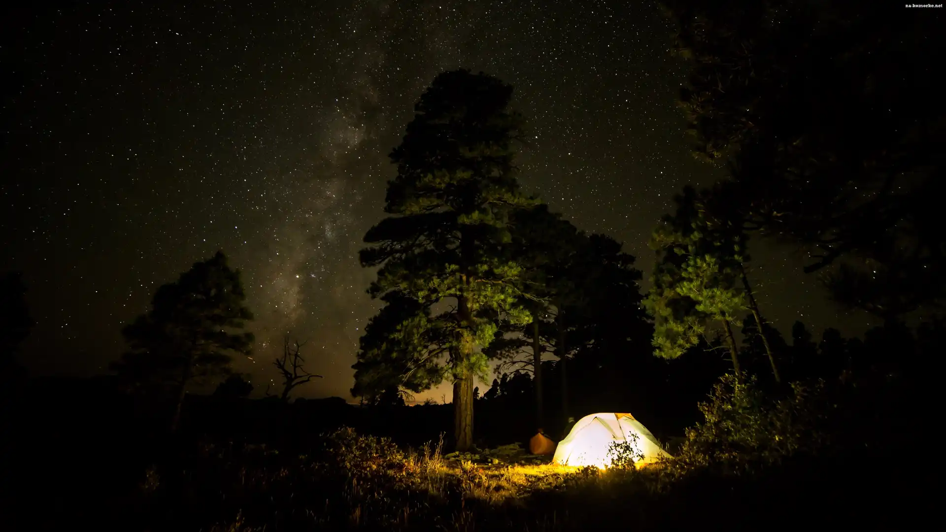 Noc, Namiot, Drzewa, Gwiazdy na Komórkę