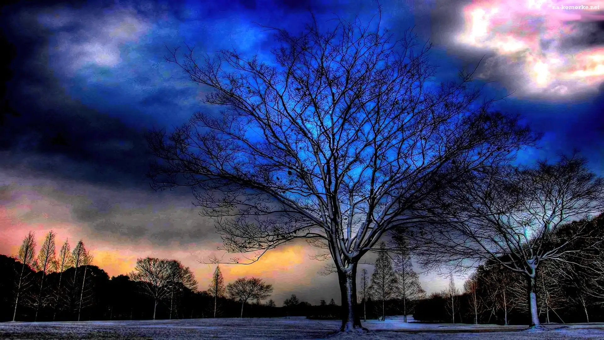 Drzewo, Noc, Niebo na Komórkę