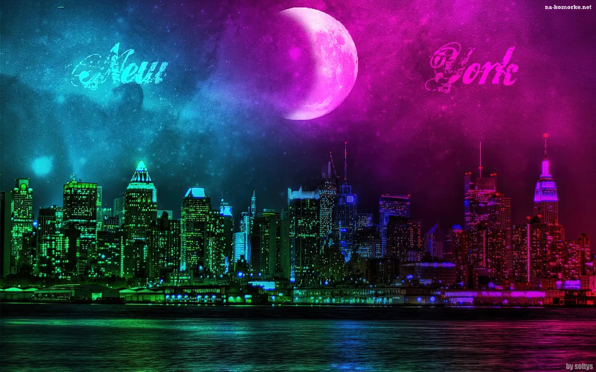 Dwa, Noc, New York, Księżyc, Niebo, Kolory na Komórkę