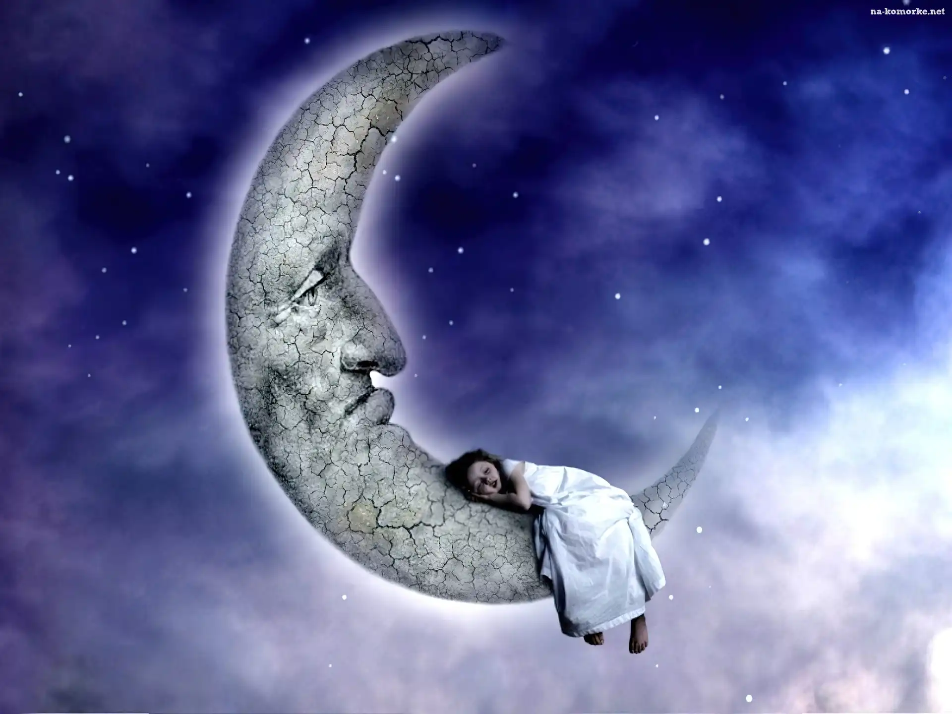 Noc, Dziecko, Księżyc, Śpiące na Komórkę