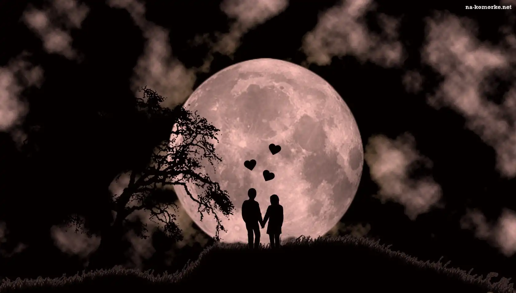Noc, Zakochani, Księżyc, Para na Komórkę