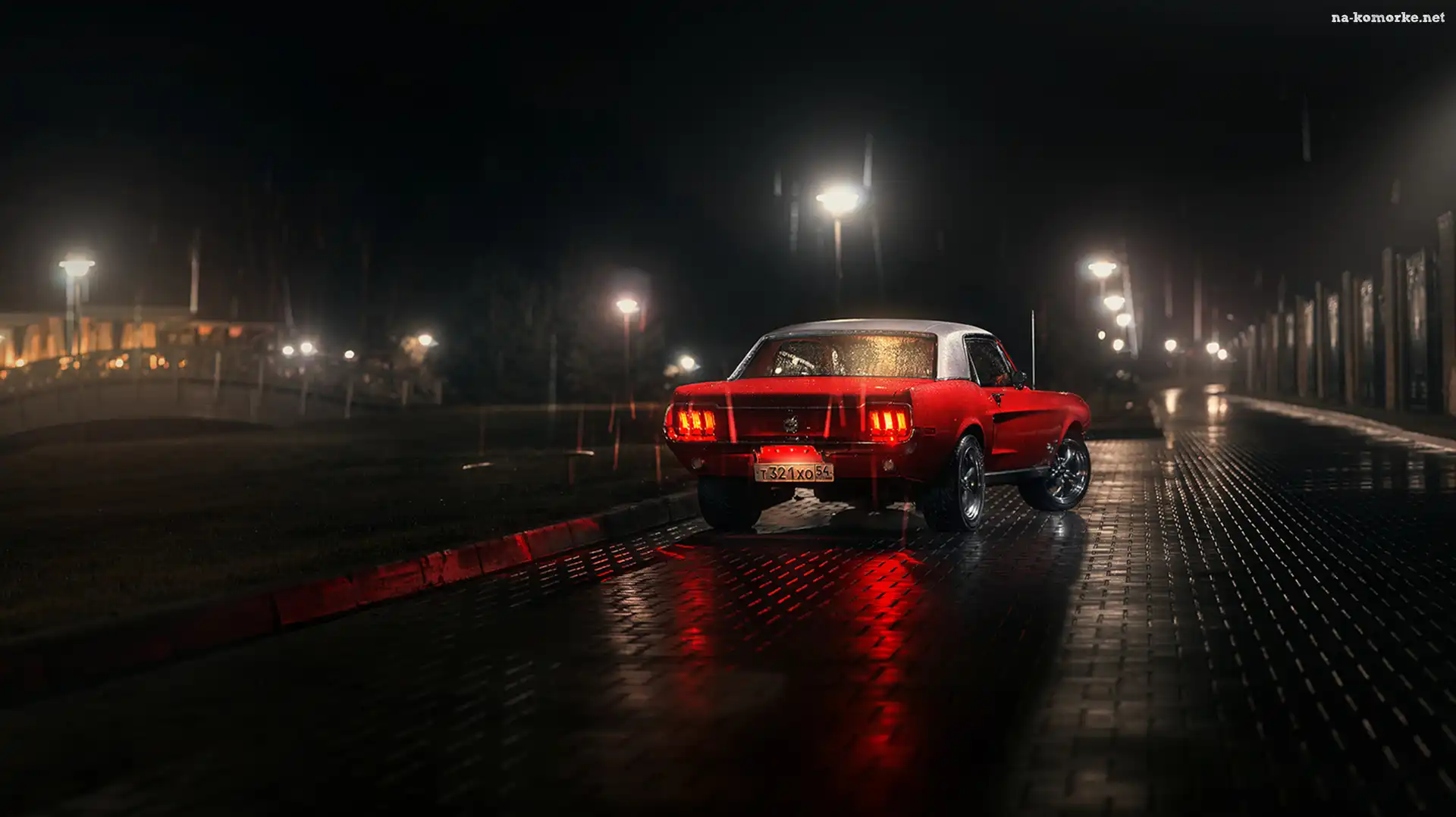 Noc, Czerwony, Ford, Mustang, Deszcz na Komórkę