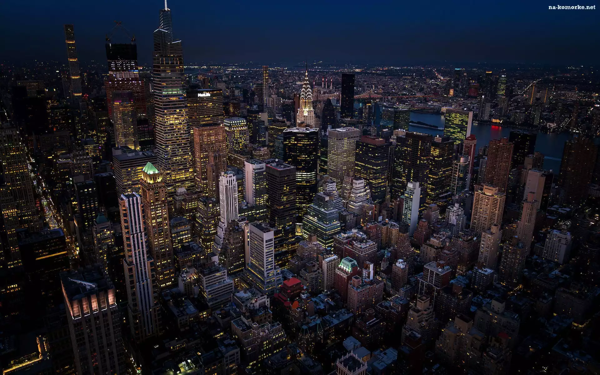 Noc, Stany Zjednoczone, Wieżowce, Z lotu ptaka, Manhattan, Nowy Jork na Komórkę